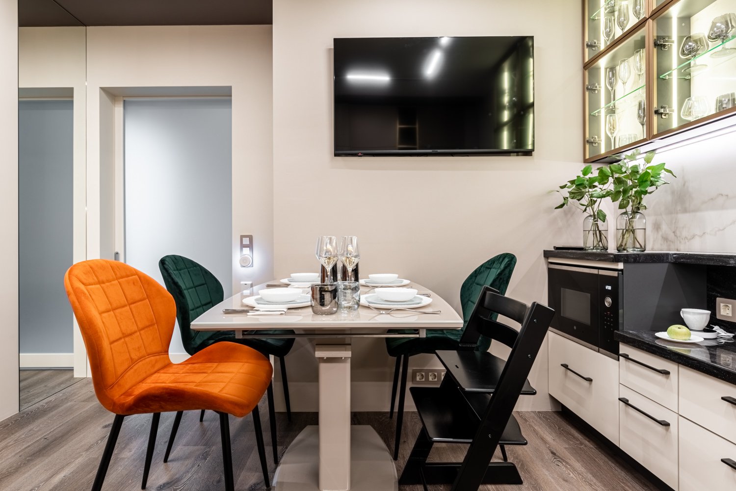 Перед дизайнером Татьяной Кононовой-Левиной стояла задача сделать так, чтобы на кухне было удобно жить, готовить и творить всем жителям квартиры, но и чтобы Данил смог пользоваться удобствами, такими элементарными, как сделать самому себе чай, набрать воды, сделать себе бутерброд. И задача удалась!